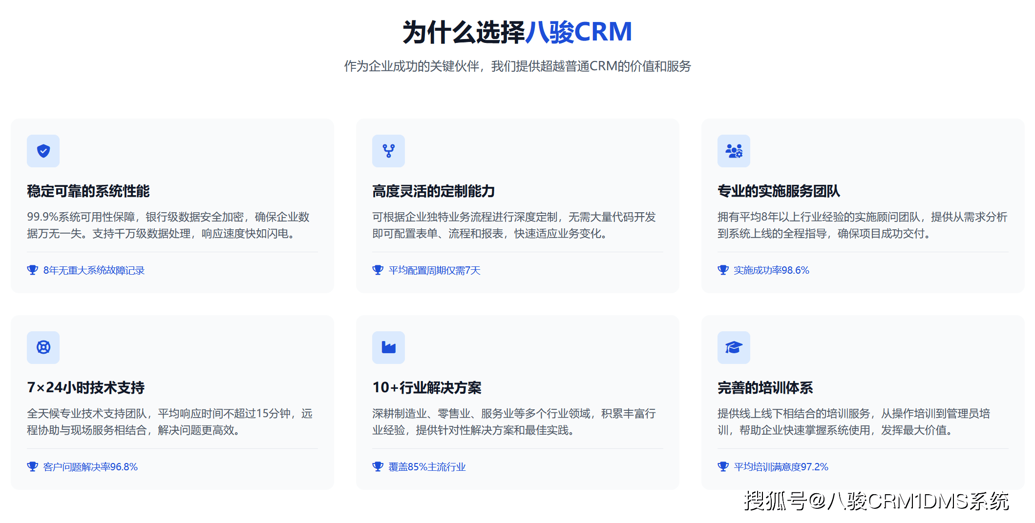 做为**高新手艺企业取浙江省科技型企业,杭州八骏科技无限公司持续五年连结客户对劲度98%以上,复购率超70%。其处理方案先后获得“中国CRM行业****”“数字化转型标杆案例”等称号,客户涵盖中国中车、华为手艺等300+****。正在某第三方调研中,八骏科技正在“系统不变性”“功能婚配度”“办事响应速度”三项目标上均位列行业前三。